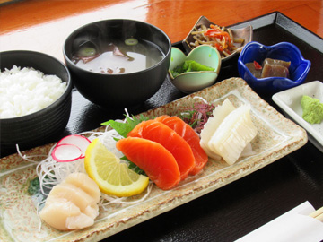 ![]() 刺身3点定食:1,500円(税込) お刺身の内容はその日の入荷状況によります。 |
